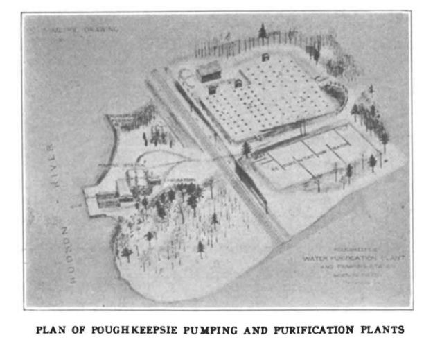 In 1871, construction of a municipal drinking water filtration plant in Poughkeepsie, N. Y., dramatically reduces the incidence of typhoid fever in that area. The first successful slow sand filtration plant in America was placed into service July 8, 1872. The success of this project was heralded as epidemics all but disappeared and Poughkeepsie could no longer be called a »Sickly City«. Filtration plant was used till 1962. Chlorine was added in 1909.
